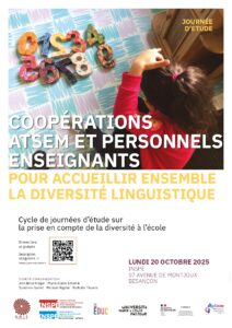Journée d’étude « Coopérations ATSEM et personnels enseignants, pour accueillir ensemble la diversité linguistique », lundi 20 octobre, INSPE de Besançon (25)