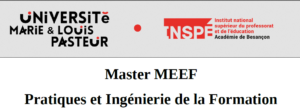 Master MEEF mention Pratiques et Ingénierie de la Formation (PIF), parcours Ingénierie et Recherche en Éducation (IRE) proposé par l’INSPE de Franche-Comté.